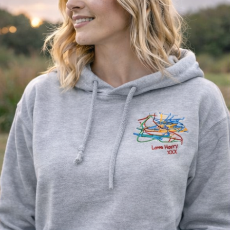 Simply send us a clear photo of handwriting or a drawing β from your child, a loved one, or even your own β and we will professionally digitise it before carefully embroidering it onto your hoodie.